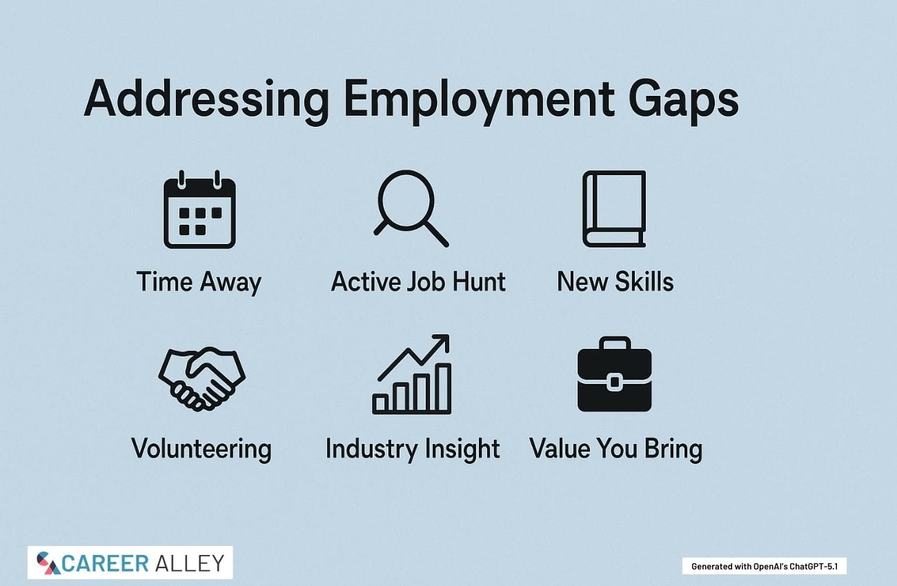 - Results Focus: Frame answers around measurable results you delivered in previous roles and realistic contributions you can make now, helping employers look past the gap and focus on impact.