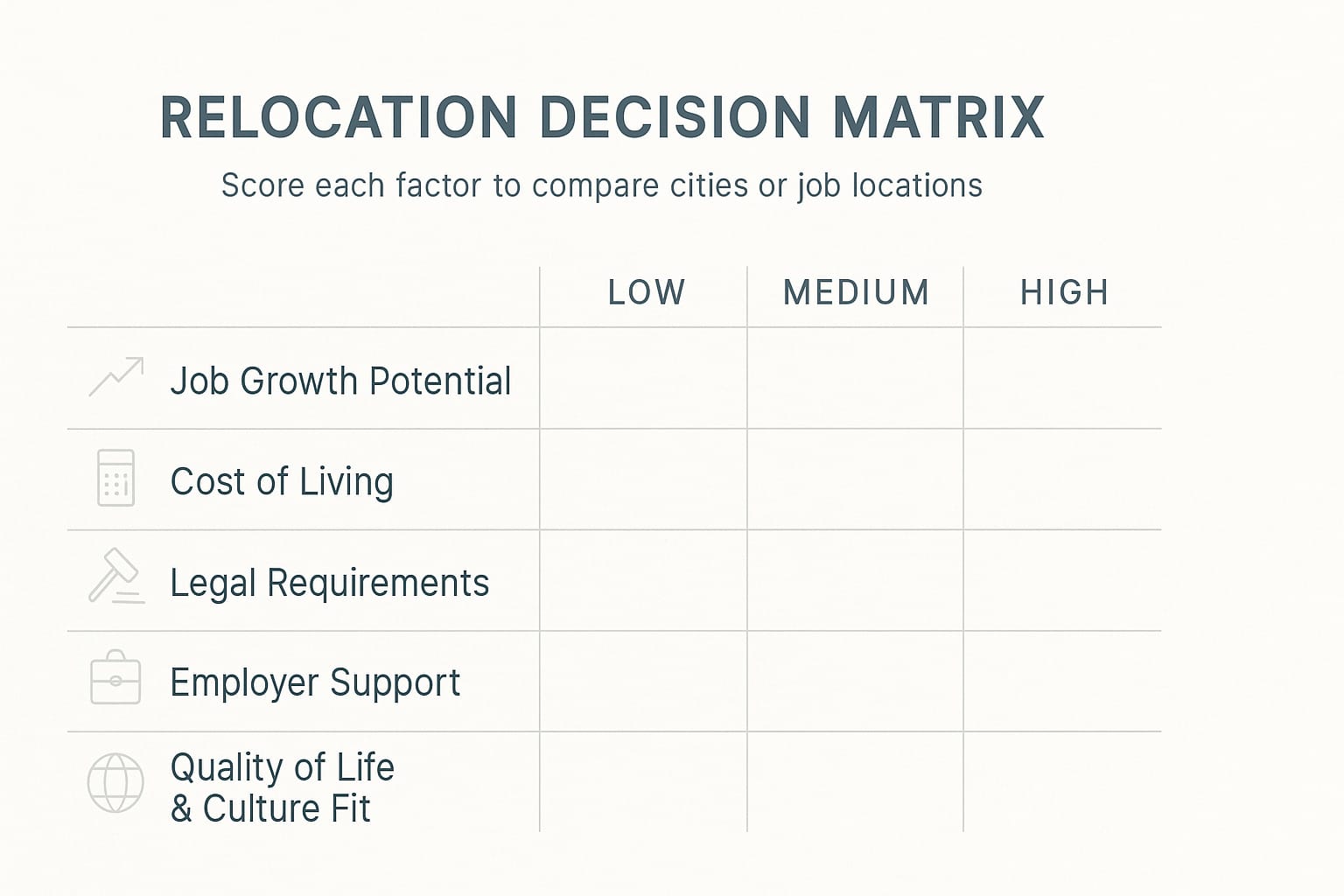 - Confirm Employer Support: Request written relocation benefits this week, including moving costs, legal support, and housing help.