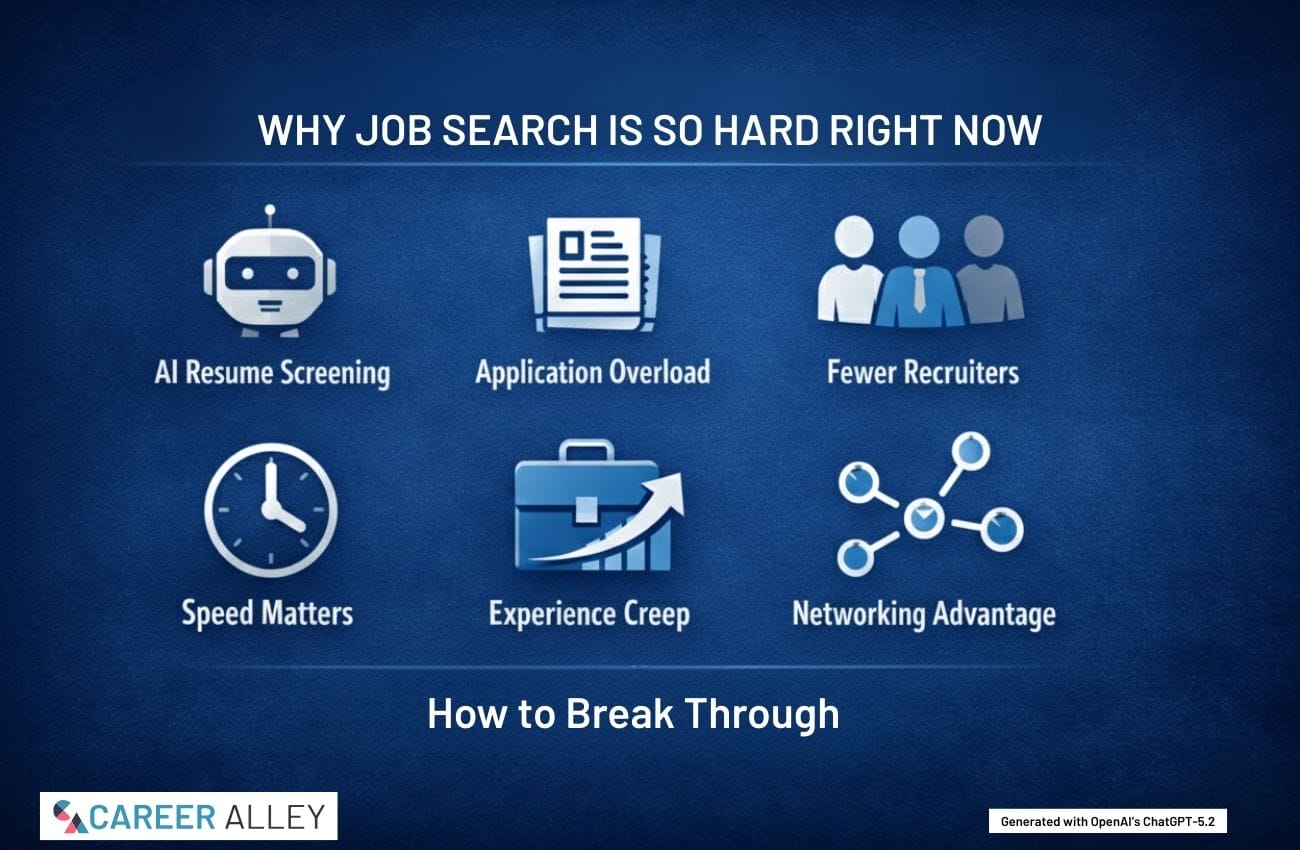 The job search is difficult right now because the hiring machine is congested: more applicants, leaner recruiting teams, and a screening process that has become faster and less forgiving. That can feel personal, but it’s mostly structural. The winners in this market are not the people who apply to the most jobs. They’re the people who apply early, communicate impact clearly, and create access through relationships that pull them out of the pile. If you treat your search like a system and build proof as you go, you can break through even in a tough market.